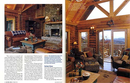 “The scenery is so peaceful and serene. I just forget about everything when I’m here,” explains Morgan, a radiation oncologist who first visited Tennessee with his wife Jenny in 1991. As their family grew to include daughters Lauren, 12, Jessie, 11, and Rachel, 9, they made it an annual pilgrimage from their home in Indiana. “As much as we come, I thought we might as well have our own place, a place big enough that we can bring family and friends,” Morgan says. Jenny, however, wasn’t convinced, “He came back from that hike with a big song and dance,” she recalls with a laugh. “But his job is demanding, and if he took on this project, I knew that I would be the one orchestrating it.” With her hands already full managing one household, Jenny left the budding scheme entirely in Morgan’s care, figuring it would never come to fruition. To her surprise, Morgan persisted, ferreting out a 2-acre parcel on the northern border of the Great Smoky Mountains National Park, near Gatlinburg. With mountain views pioneers might have envied, it seemed the perfect setting for a log home. “It’s a throwback to simpler days,” says Morgan, who linked the notion of a big log cabin to his grandparents’ rustic home in West Virginia. “It took me back to those times as a kid, when I went there just to have fun and relax.”